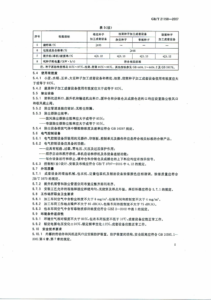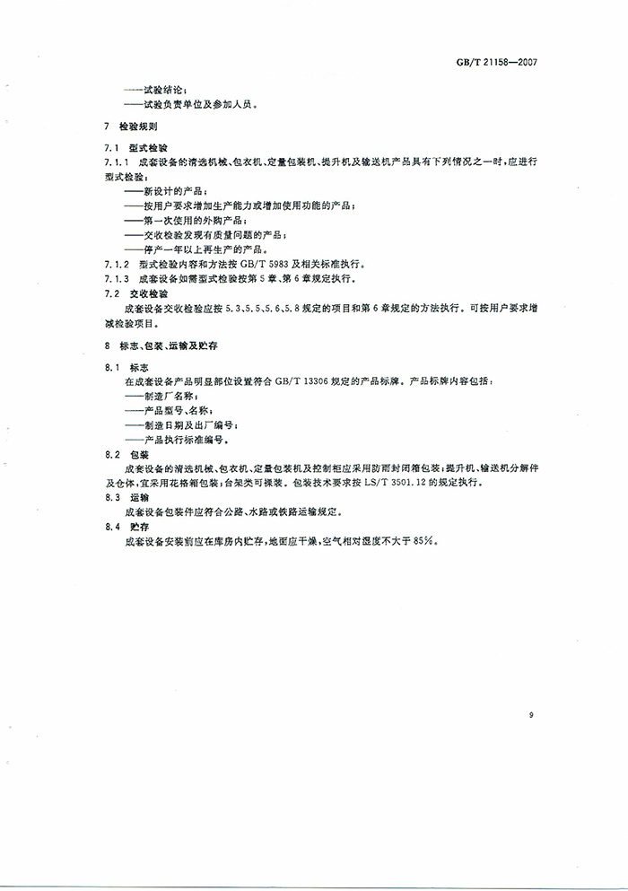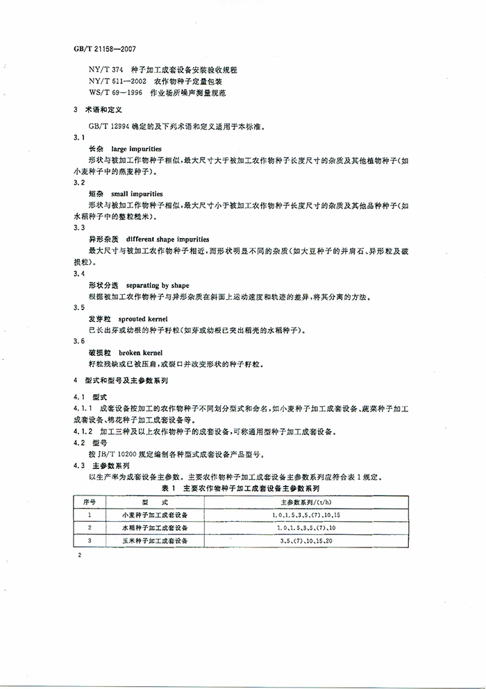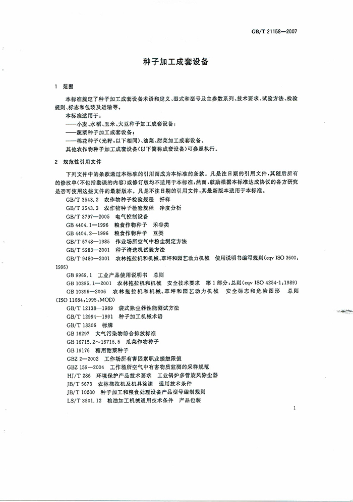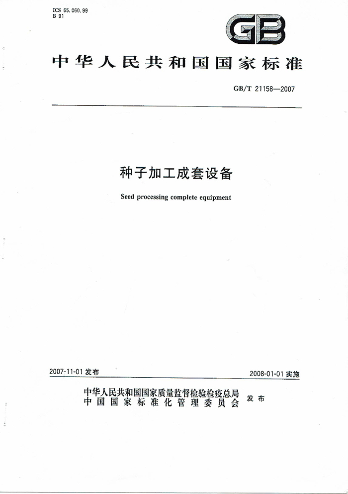 GB/T21158-2007種子加工成套設(shè)備國家標準